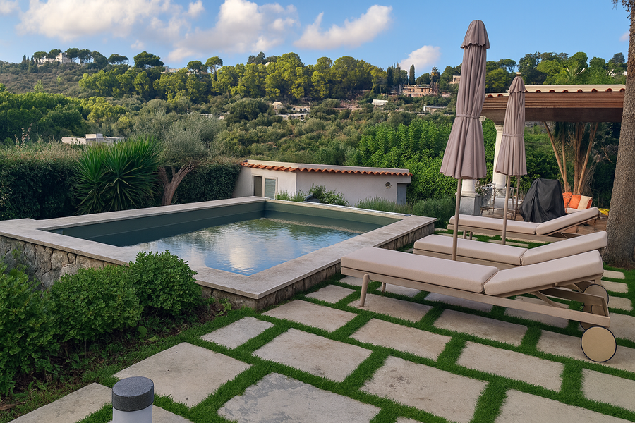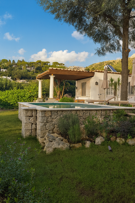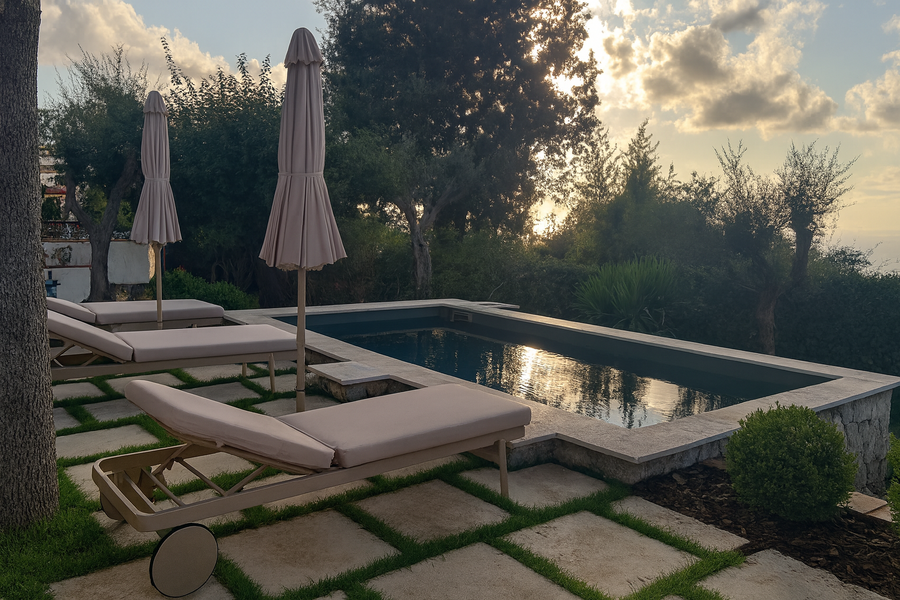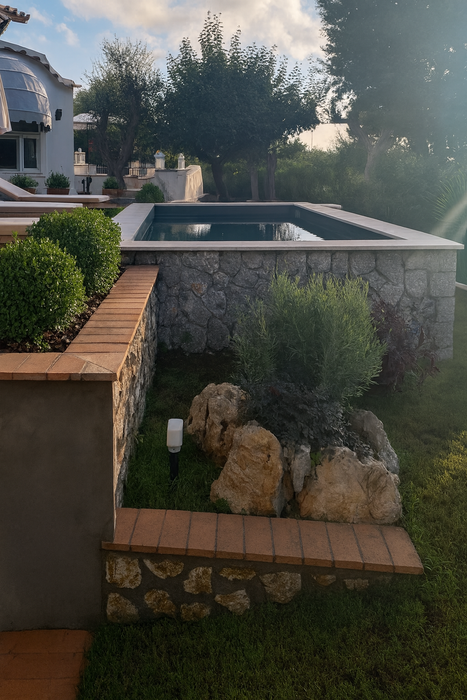 Realizzazione di una vasca da appoggio integrata nel giardino mediterraneo a terrazzamenti