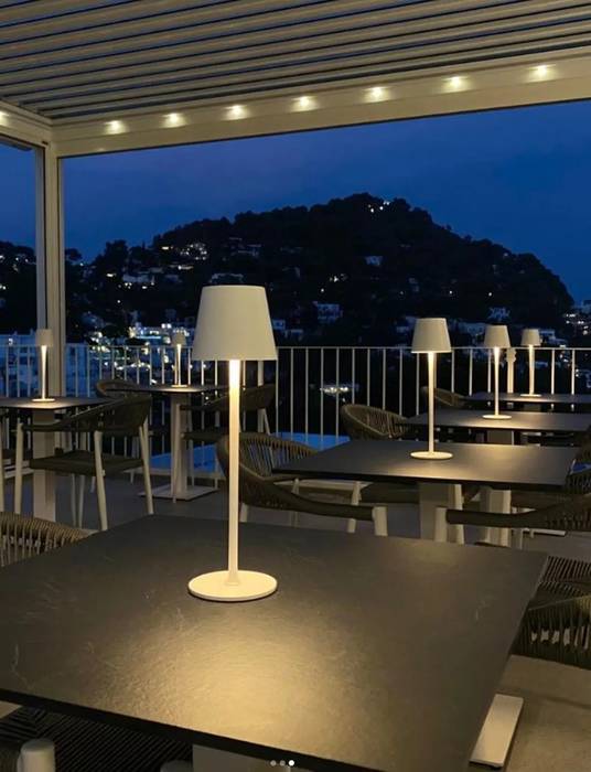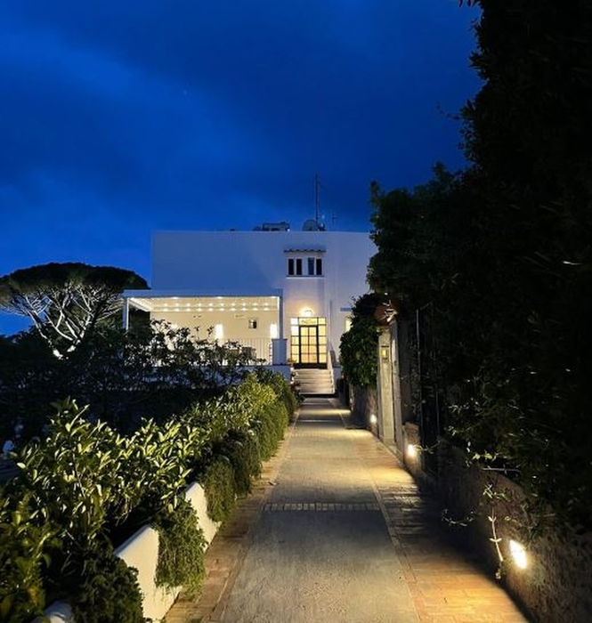 progetto di riqualificazione del patio esterno con pergola bioclimatica, pavimentazione, illuminazione, arredo