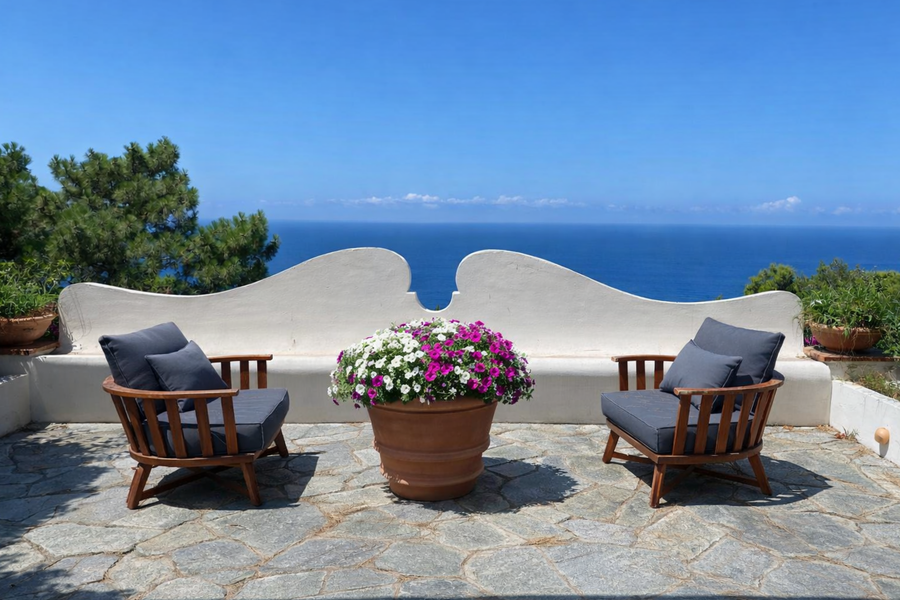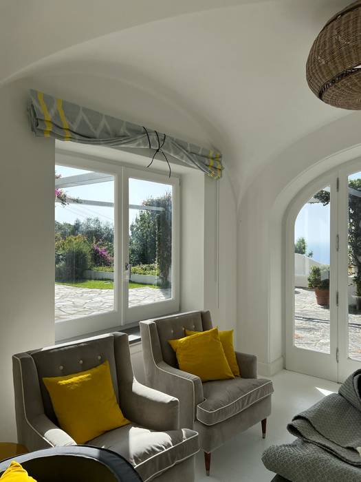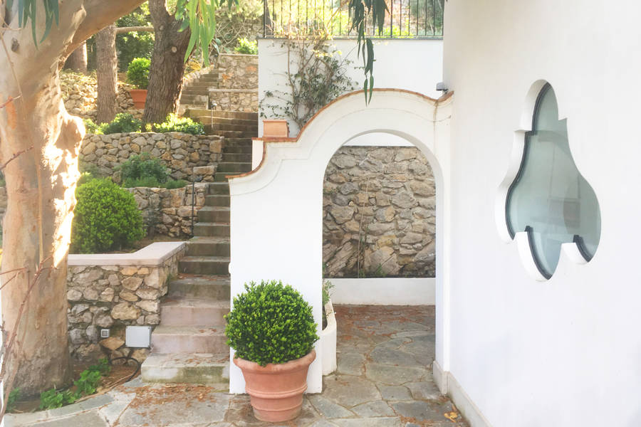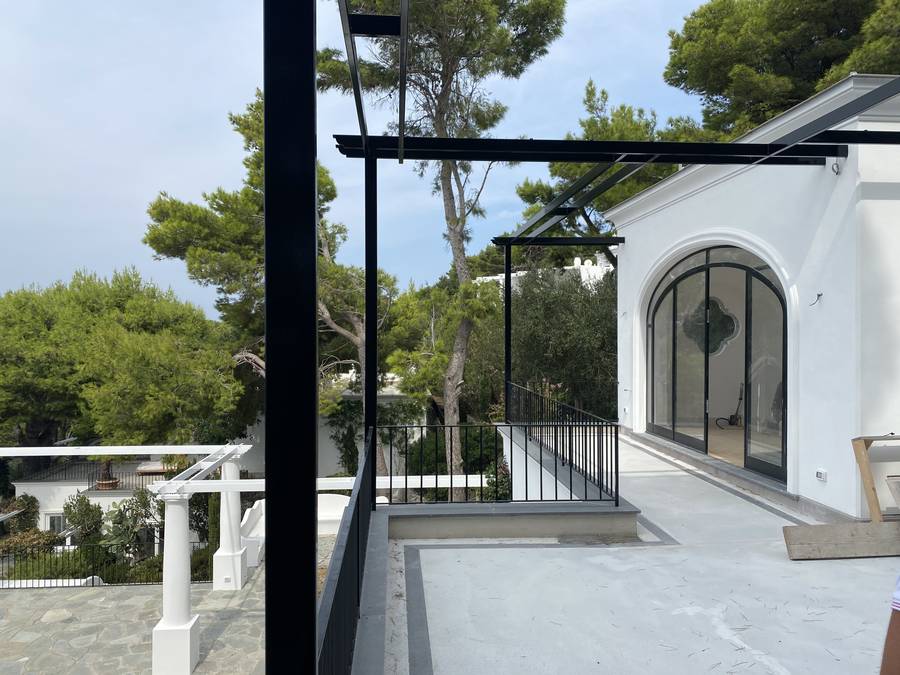 Il linguaggio architettonico adottato per la ricostruzione è in linea con le originarie costruzioni locali, volumi semplici, puri e definiti esternamente con intonaco bianco, finestre e balconi in legno e ferro, con pergole in metallo protette da incannucciati proprio a memoria delle finiture storiche. Il ridisegno del giardino è stato eseguito con l’obiettivo di rispettare ed integrare le precedenti essenze di macchia mediterranea e di mantenere le caratteristiche naturalistiche del paesaggio, senza alterazioni legate alla mano dell’uomo.